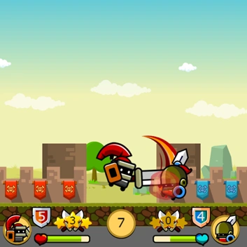 Two teams/players must chose their champion and correctly identify vocabulary to defeat their opponent in combat. Correctly answering questions will increase the champions defence points, making it less likely that they will take damage from opponents attacks. Defence points will also decrease if the vocabulary is identified incorrectly, or too slowly! .. consecutive correct answers will increase attack points, more attack points means more attempts to hit the opponent per turn.