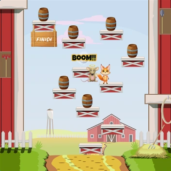 Two players/teams must correctly identify vocabulary in order to jump to the next platform in a race to the finish line... Only it's not quite so straightforward.. There is a exploding barrel on each of the platforms which may or may not blow up when the player lands, causing them (and potentially the other player) to fall down to a lower platform. Chain reactions are possible. Chaos is guarenteed.