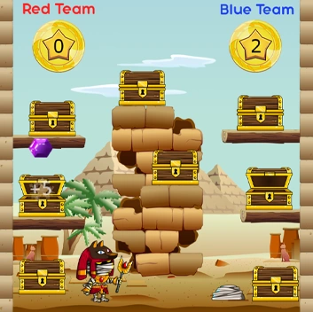 Two teams must correctly answer the mummies' questions (correctly identify vocabulary) in order to get keys which can be used to unlock treasure chests. Some chests contain gems of various point values .. some contain booby traps. The team with the most points at the end is the winner. WARNING: This game contains mild horror (mummies,maniacal laughter..zombie noises).